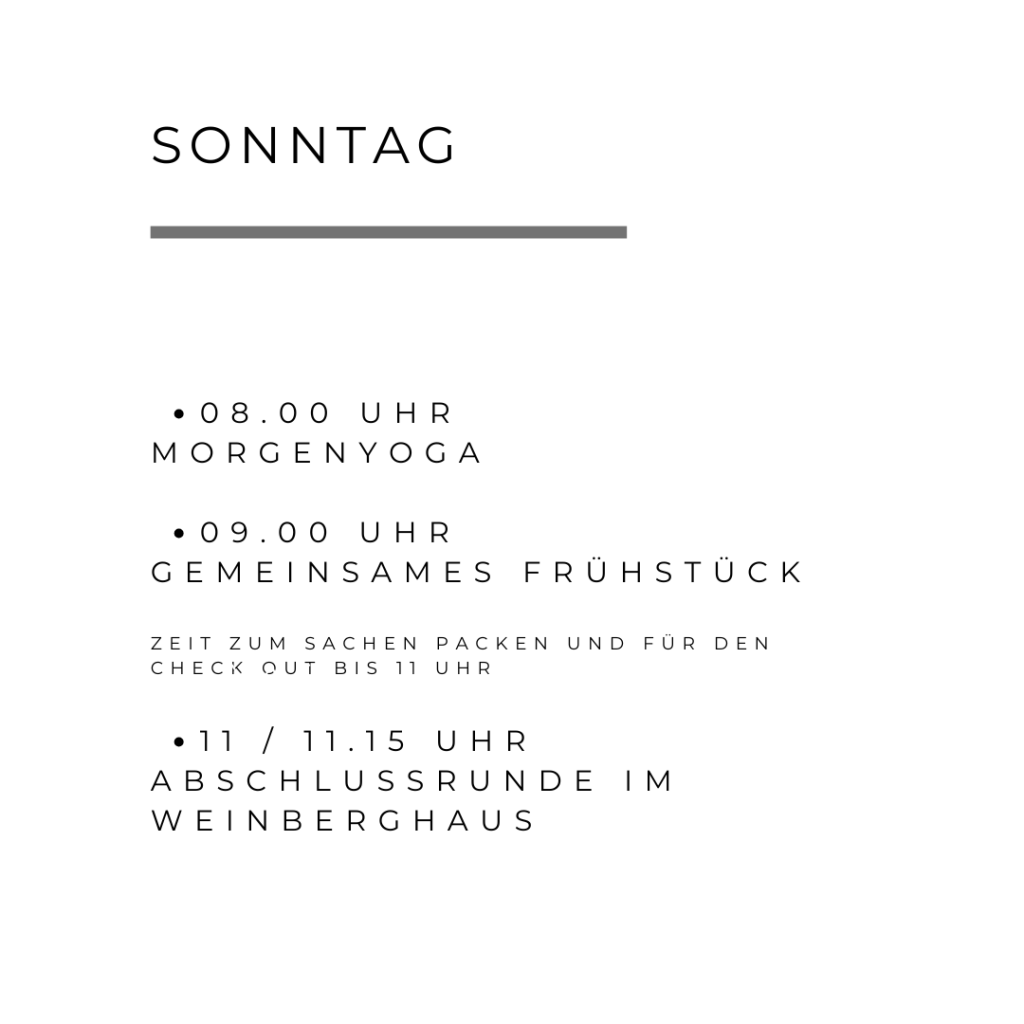 Wir werden an diesem Wochenende morgens & abends gemeinsam Yoga praktizieren. Am Abend vorrangig im Yin Stil, am Morgen ein wenig aktiver – alles in allem aber sehr soft!