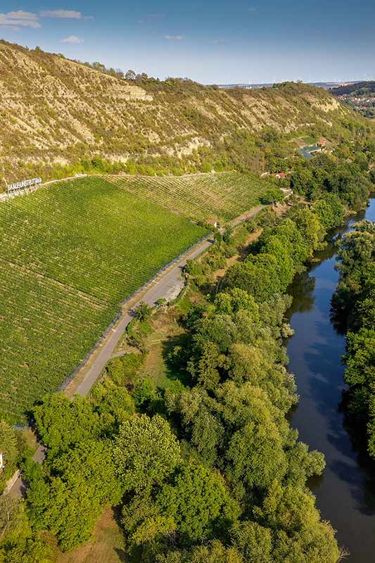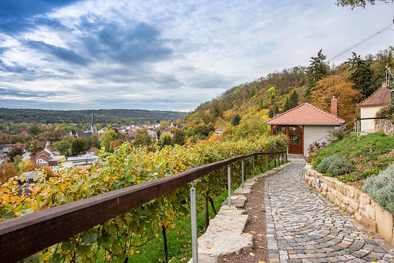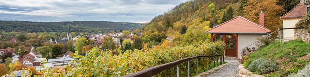 „Vom Südhang der Saalberge der Wein- und Kurstadt Bad Kösen schweift Ihr Blick von unserem Hotel hinab ins Saaletal.“ – Lass auch du deinen Blick schweifen!